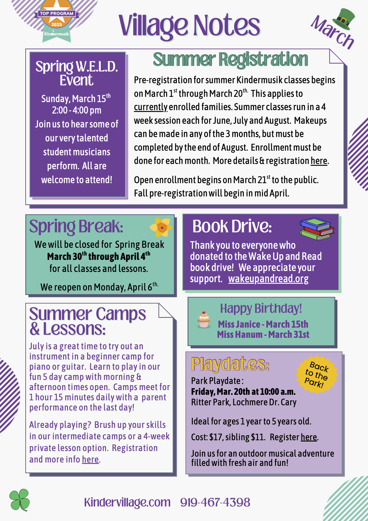 See our Yearly Calendars below for recital dates, holiday closures and more!