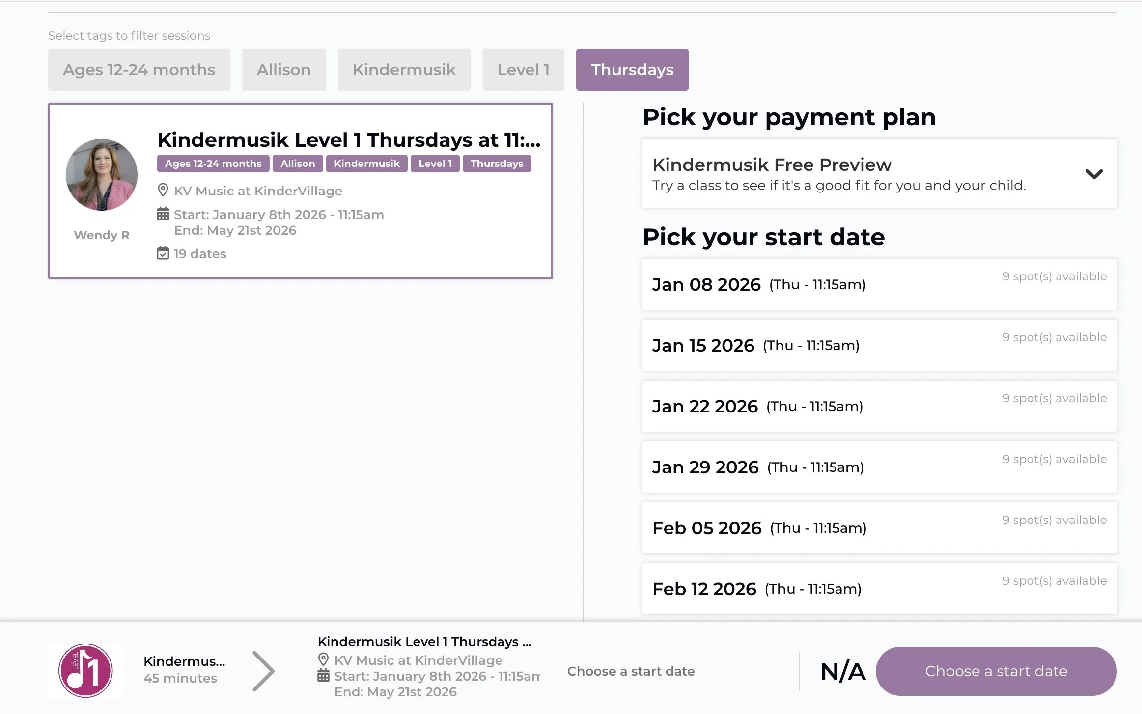 At Kindervillage Music, every child’s unique journey is honored through Kindermusik classes that nurture creativity, self-expression, and growth. Through songs, movement, and rhythmical play, children build language, social, and emotional skills while experiencing the joy of music in a research-based, supportive environment.